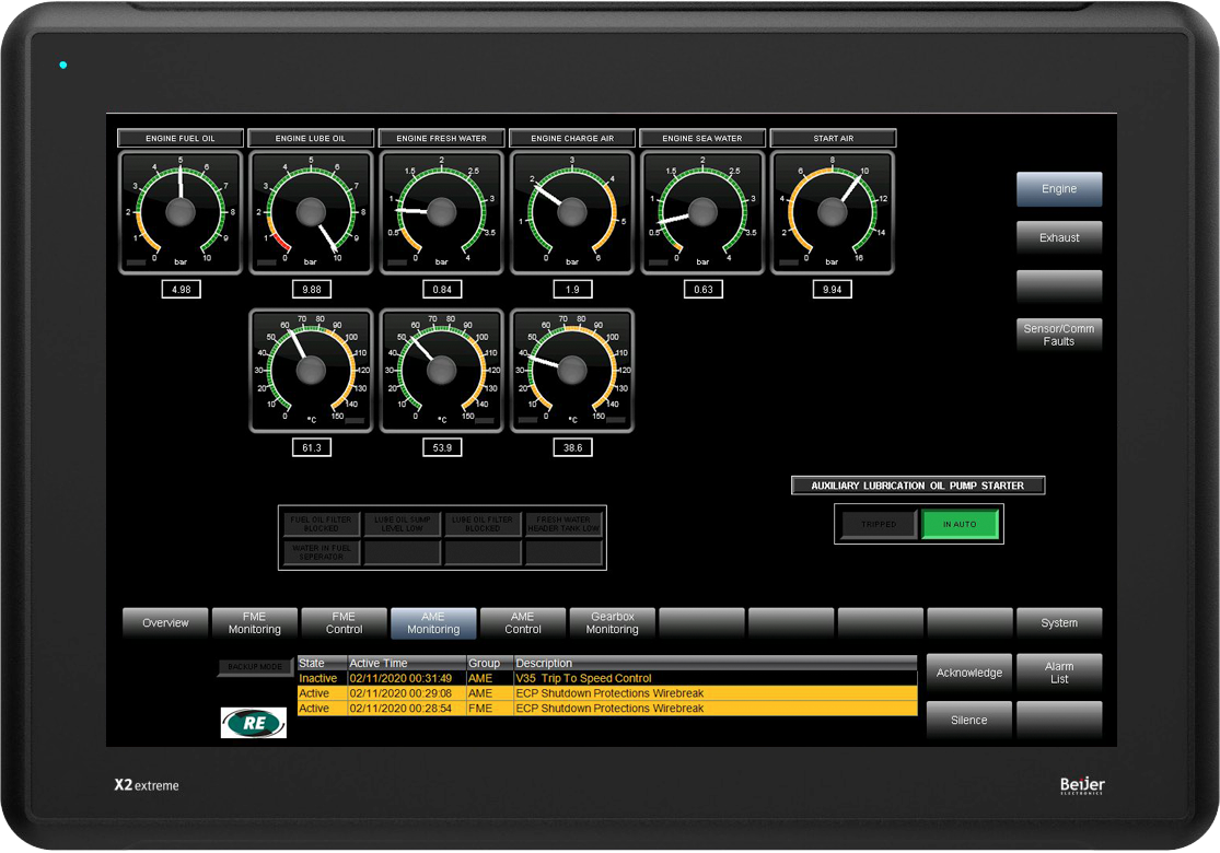 HEINZMANN Regulateurs Europa monitoring and surveillance systems can be as simple or complex as the application demands. From simple LED and LCD displays to comprehensive touch screen-based systems and ship wide monitoring. It is normal HEINZMANN Regulateurs Europa practice to keep monitoring and safety as separate functions to avoid common mode failures that could endanger the machinery. Whilst most applications require digital and/or screen-based monitoring displays HEINZMANN Regulateurs Europa can offer a range of solutions including direct reading local engine panels.